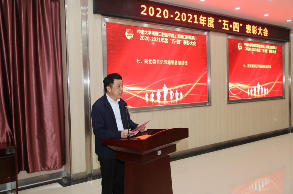 邓超纲书记在总结讲话中指出,一年来,广大团员青年争先创优,展示了我院新时代青年的奋斗理想和价值追求,更为口院的建设和发展贡献了青春力量,希望广大青年爱党爱国,厚植家国情怀;勇于担当,坚定理想信念;知行合一,书写奋斗篇章。他强调,青年兴则国家兴,青年强则国家强,青年的精神面貌决定了国家的精神面貌,相信大家一定能高举五四精神的火炬,以饱满的热情和昂扬的斗志,在学业上,工作上开拓进取,不断创新,谱写出属于自己的崭新篇章。