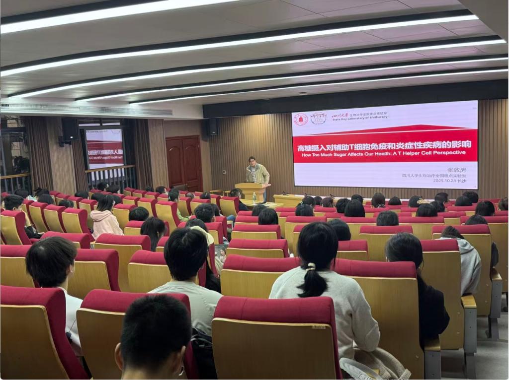 10月28日下午,四川大学生物治疗全国重点实验室张敦房教授应邀做客湘雅口腔医学讲坛,为师生们带来了一场题为《高糖摄入对辅助T细胞免疫和炎症性疾病的影响》的专题学术报告。学术报告由刘欧胜院长主持。