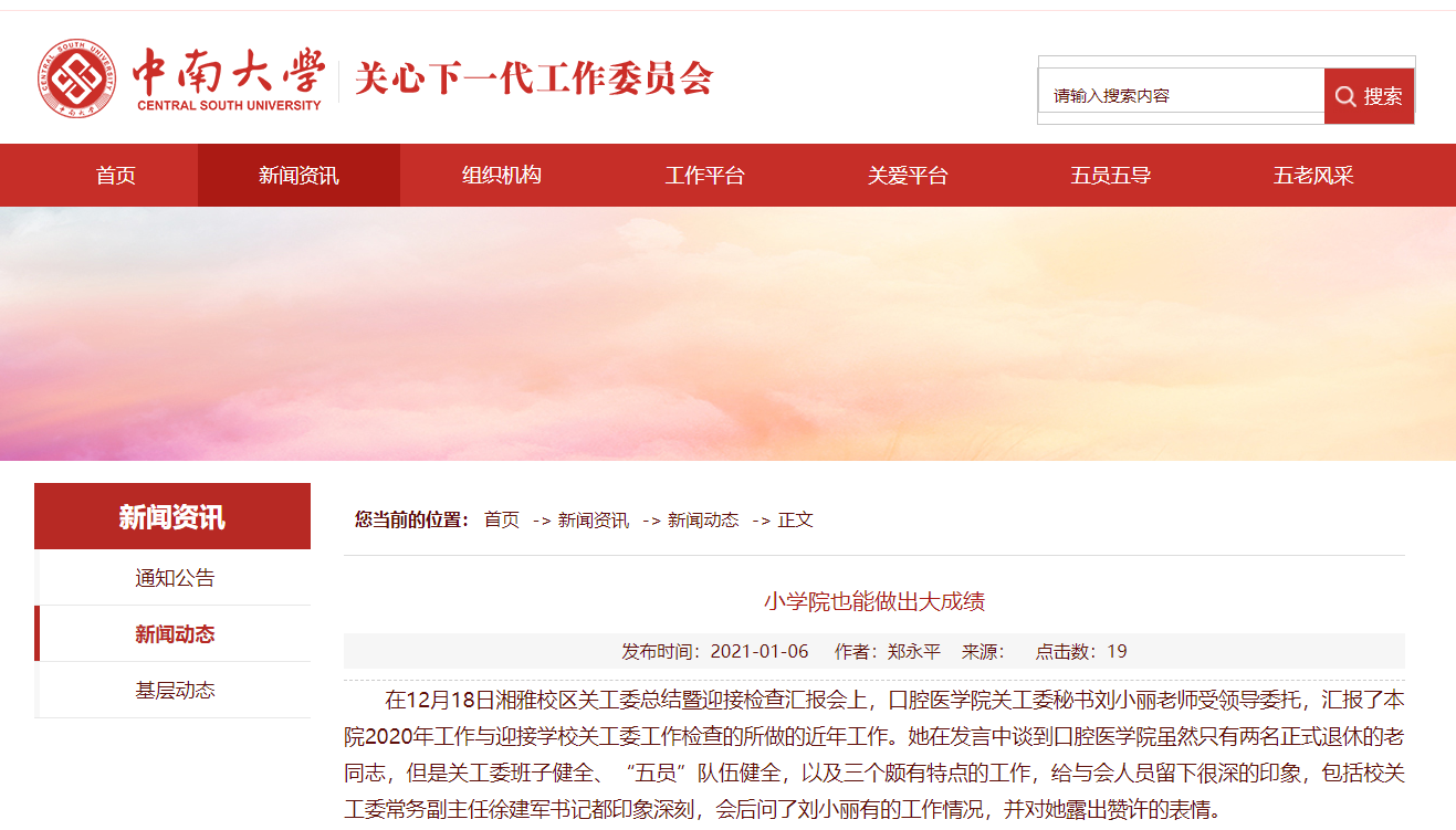 1月6日,校关工委以《小学院也能做出大成绩》为题报道推介了我院关工委2020年特色工作。